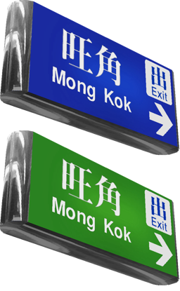 KCR Station Name Signs is a series of blocks in Joban Client Mod, replicating the hanging signs seen in KCR East Rail before the merger between KCR and MTR (Mass Transit Railway) in the real world.