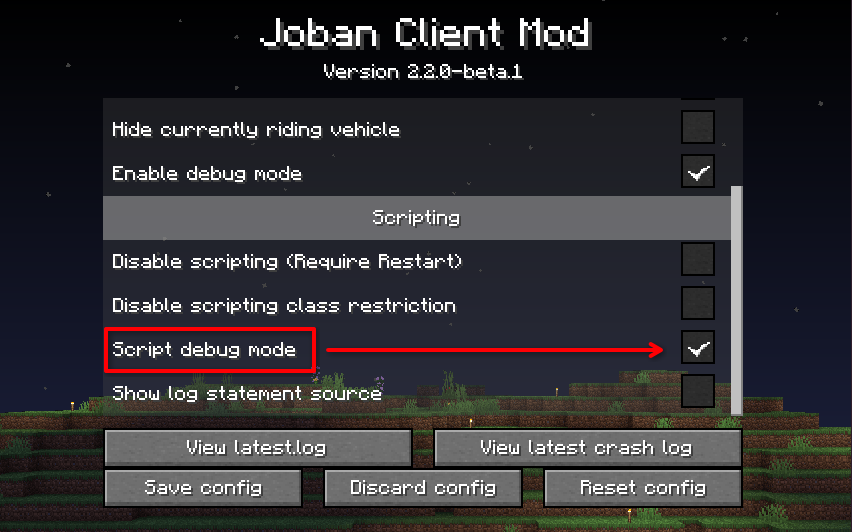 After that, make sure the Script debug mode checkbox is checked, then click Save Config.